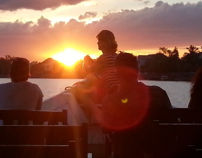 - Getting on a Boat trip along Thu Bon River back Hoi An with cool weather. Your camera is handy to capture beautiful sceneries of The Thu Bon River, and sunset time that we can see the sun goes down slowly. The most beautiful images of late afternoon of the day that everyone like best